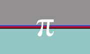 The flag was coined by the same user on the same date. It is a combination of the polyamorous flag and the autosexual flag, combined with a pi symbol in the center.