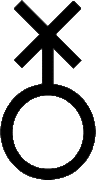 The most common non-binary/genderqueer symbol was created by Johnathan R in 2012. It is similar to the male or female symbols, but instead of a cross on the female symbol or arrow on the male symbol, it uses an X or a star on the end. The use of the X denounces both binary genders, and the letter X is commonly used in non-binary pronouns and titles. The position, pointing straight up, also deviates from the positions of the male and female symbols.